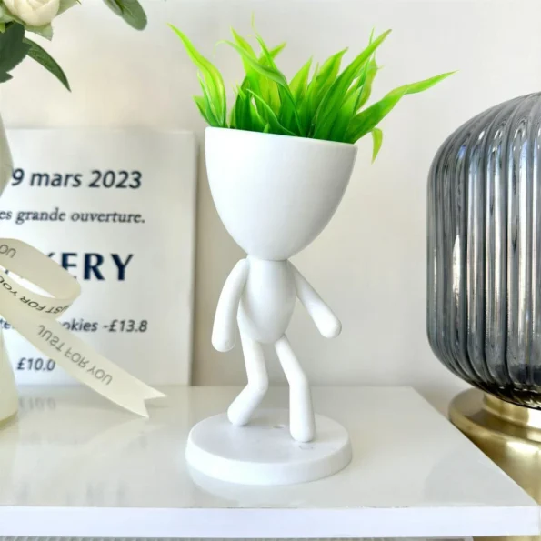 Artificial Succulents Plants in Plastic Human Shaped Pots Standing